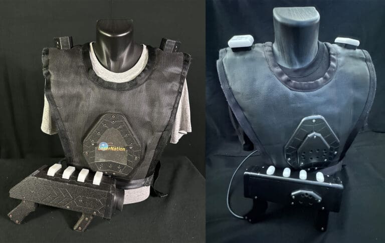 Equipment Overview: Quoted from the LaserNation website: “The equipment at Laser Nation used infrared data transmission technology, working in conjunction with software and hardware that records every aspect of a laser tag game. Laser tag players wore vests that contained sensor targets on the shoulders, chest and back. The targets operate via a computer housed inside the vest, which enables the target sensors to receive signals from an opponent’s laser for a ‘tag.’”