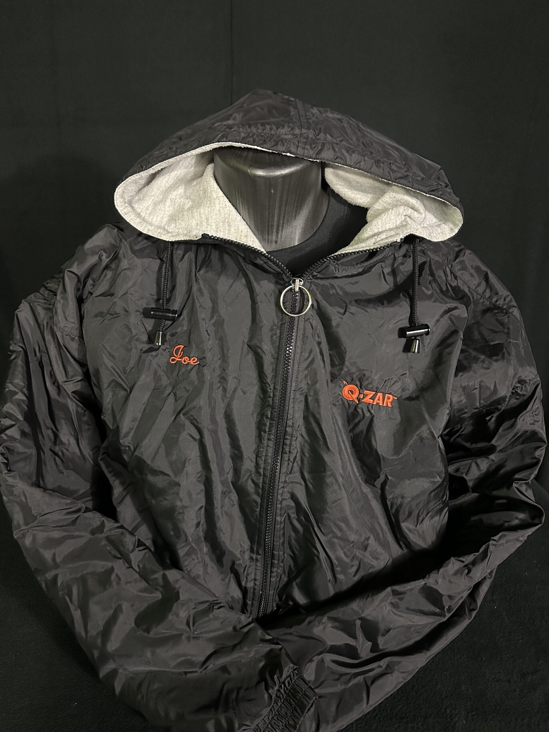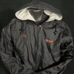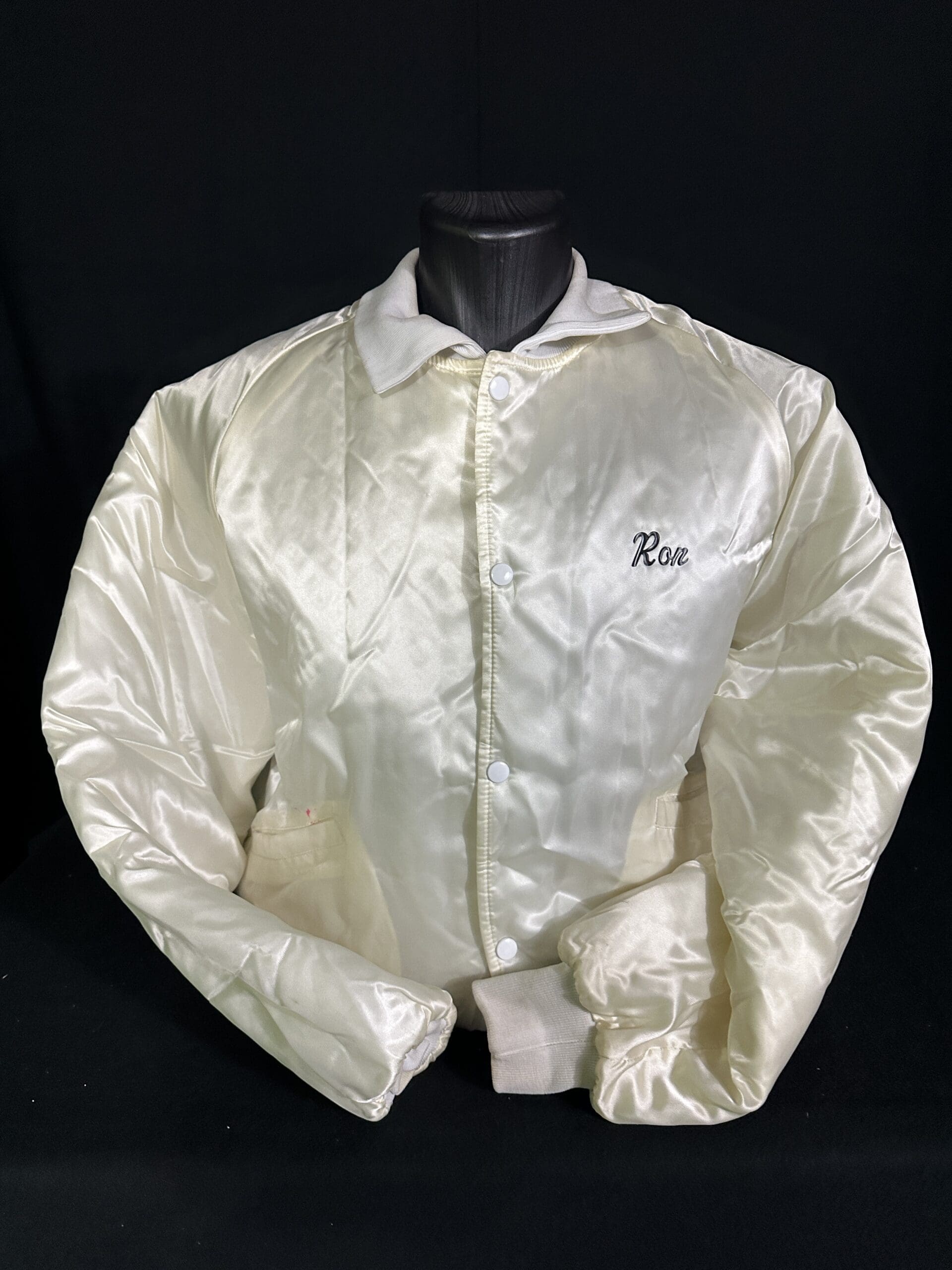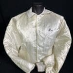 Laser Storm White Silk Logo Jacket (front) – one of the first pieces of Laser Storm clothing produced, formerly belonging to a player from arena 18 and provided courtesy of Laser Storm