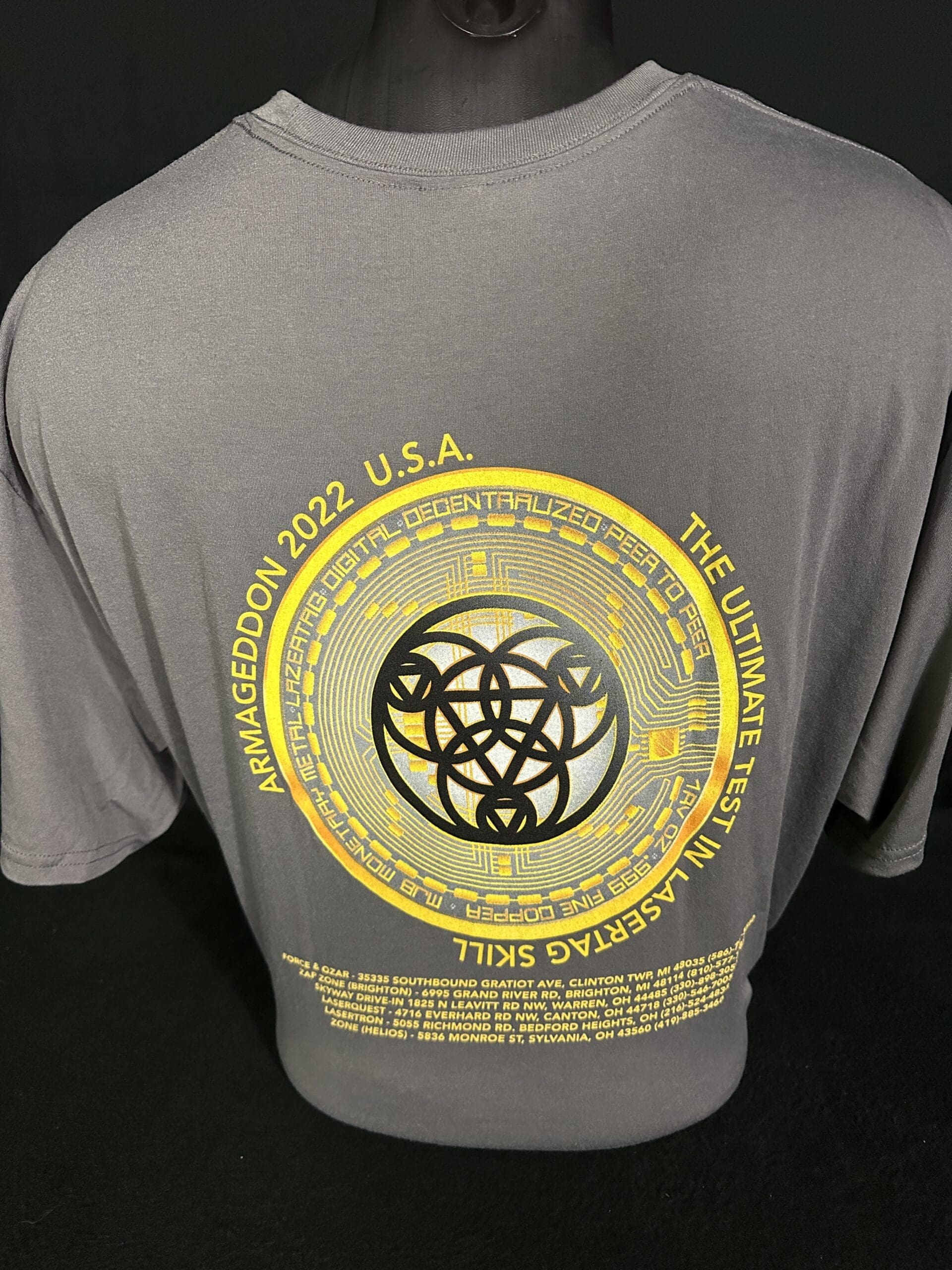 Lazer Blaze – First Tournament – Louisville, KY – presumed to be a sample T-Shirt (back)